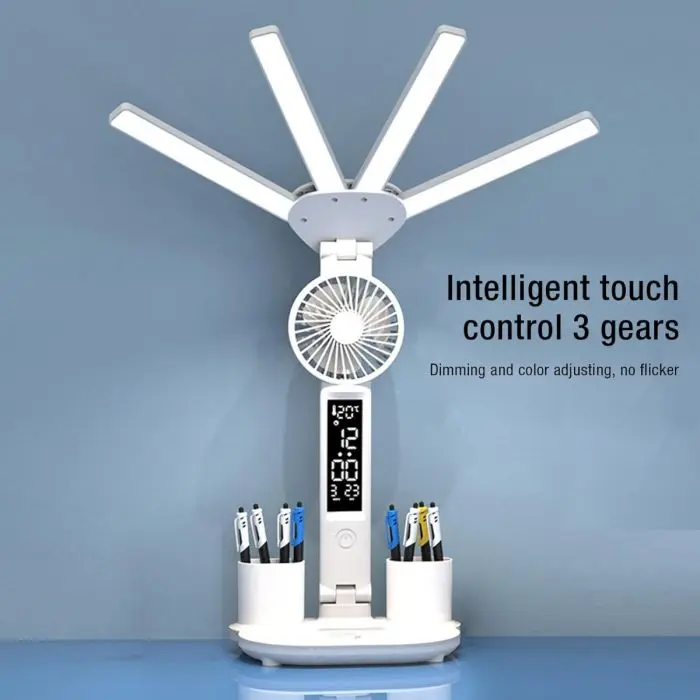 Luz de lectura, ventilador, porta lápices