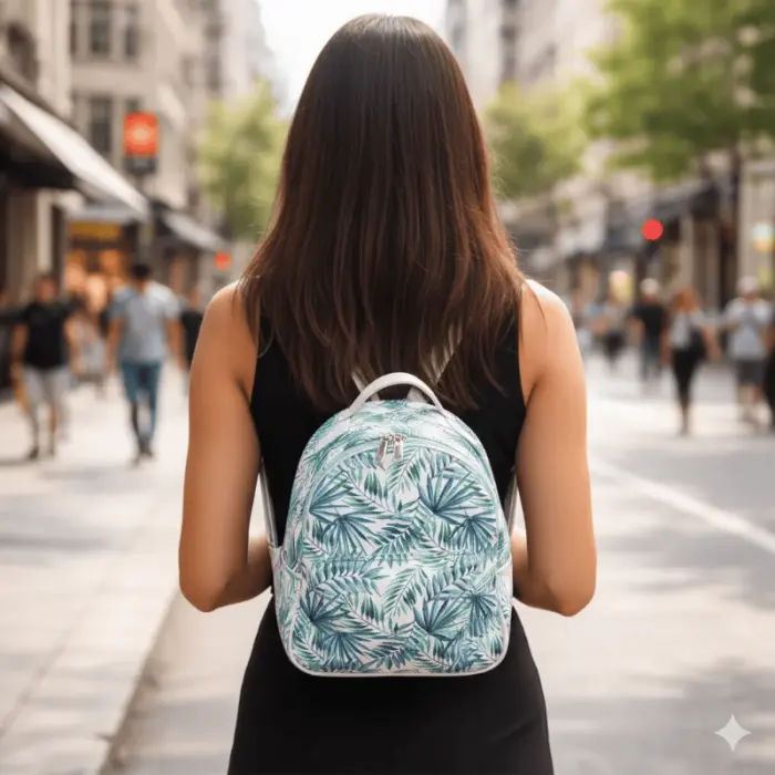 Mochila Bolso Morral Pu Mediana Mujer Sport Chic Estampado HOJAS