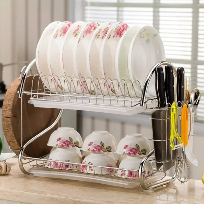 Secaplatos con Escurridor de Cubiertos y Tazas Cromado